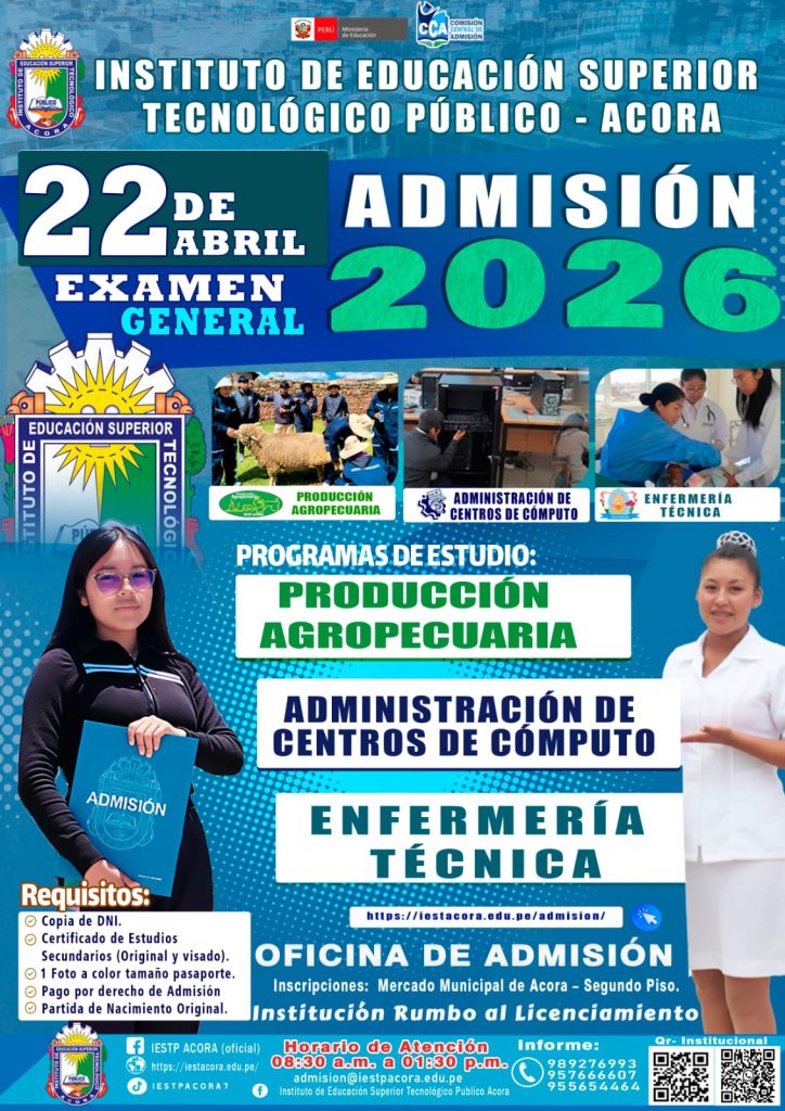 Elegir el Instituto de Educación Superior Tecnológico Público Acora es optar por una formación técnica de calidad, pertinente y con visión de futuro. Nuestra institución se distingue por: